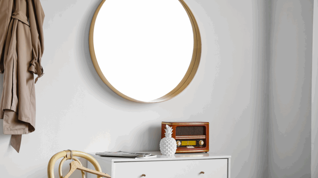 Um espelho grande pode dobrar visualmente a sensação de claridade em uma sala.