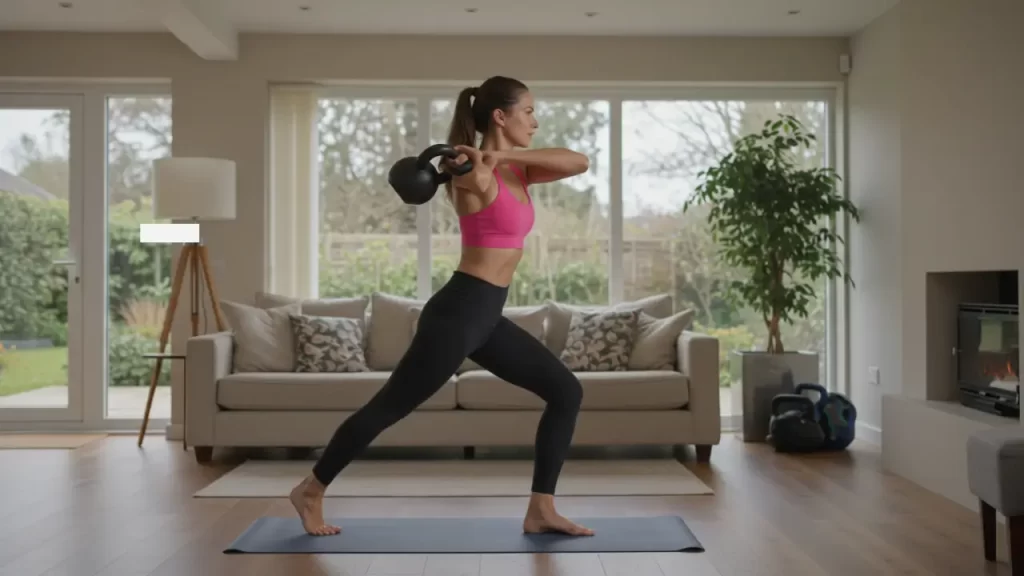 - Avanço alternado (lunge) – trabalha equilíbrio e força.